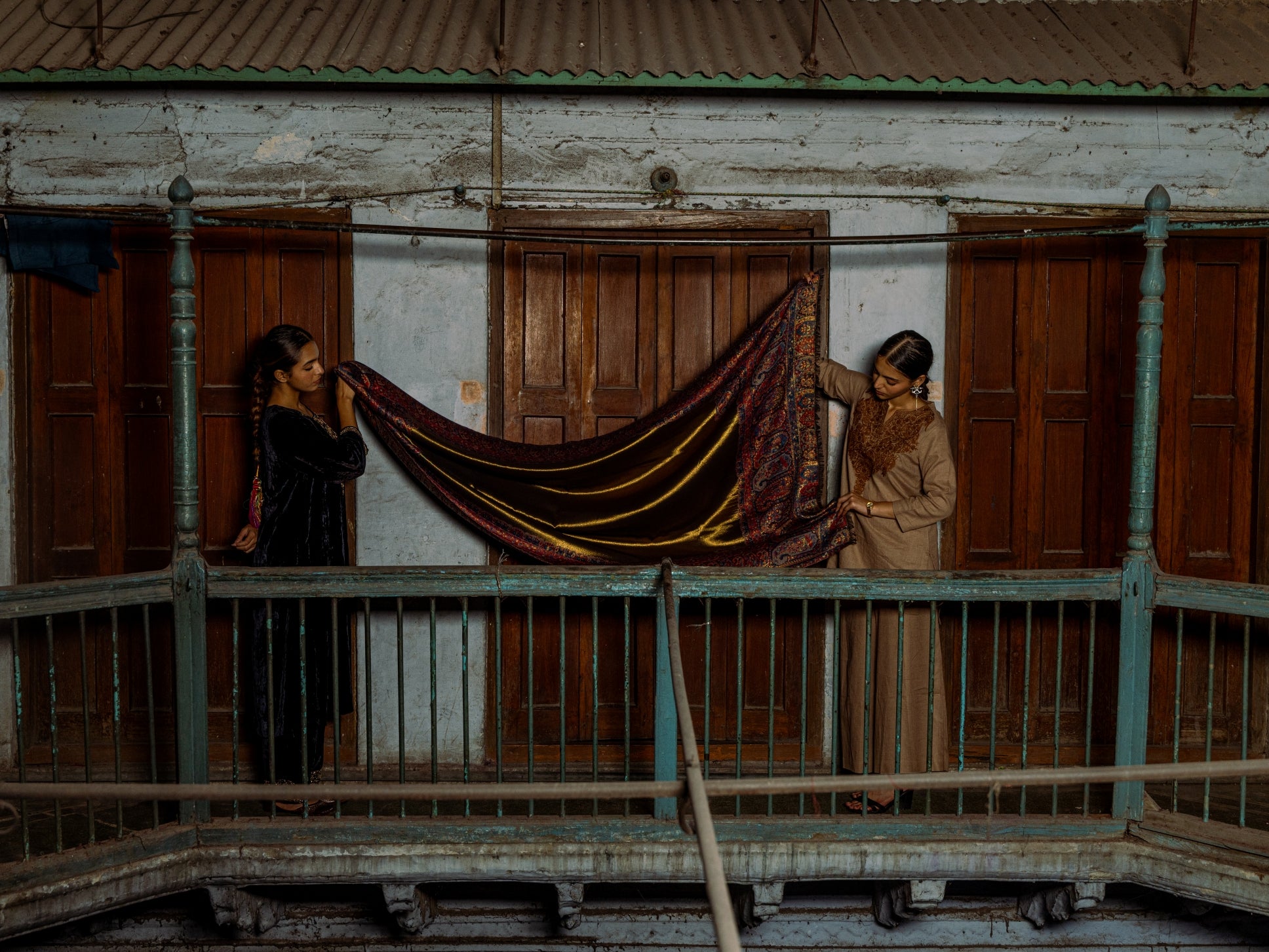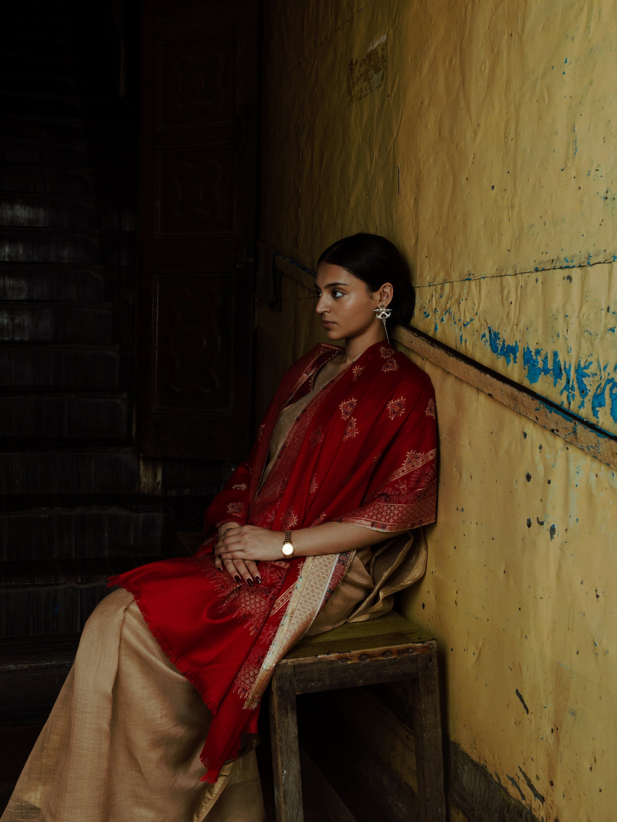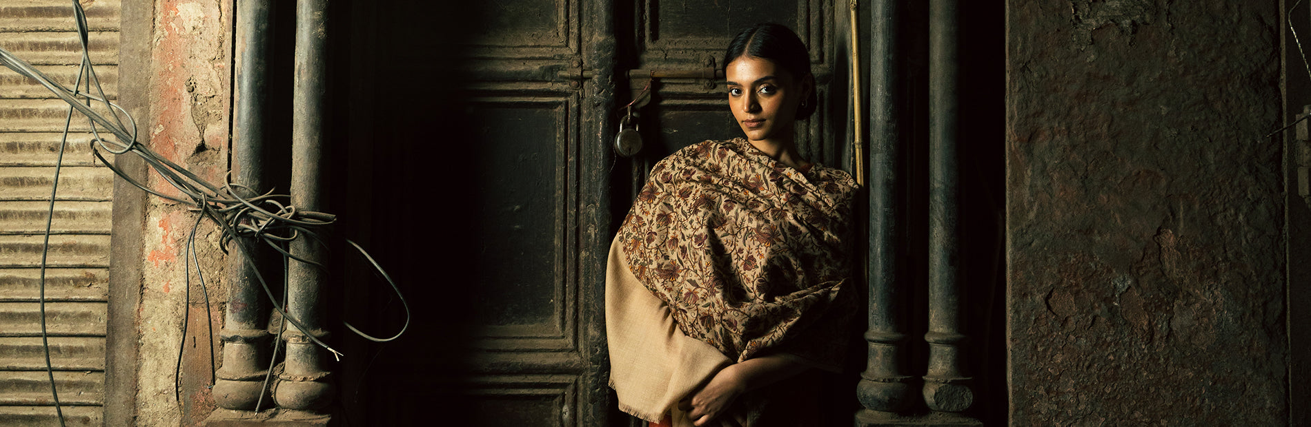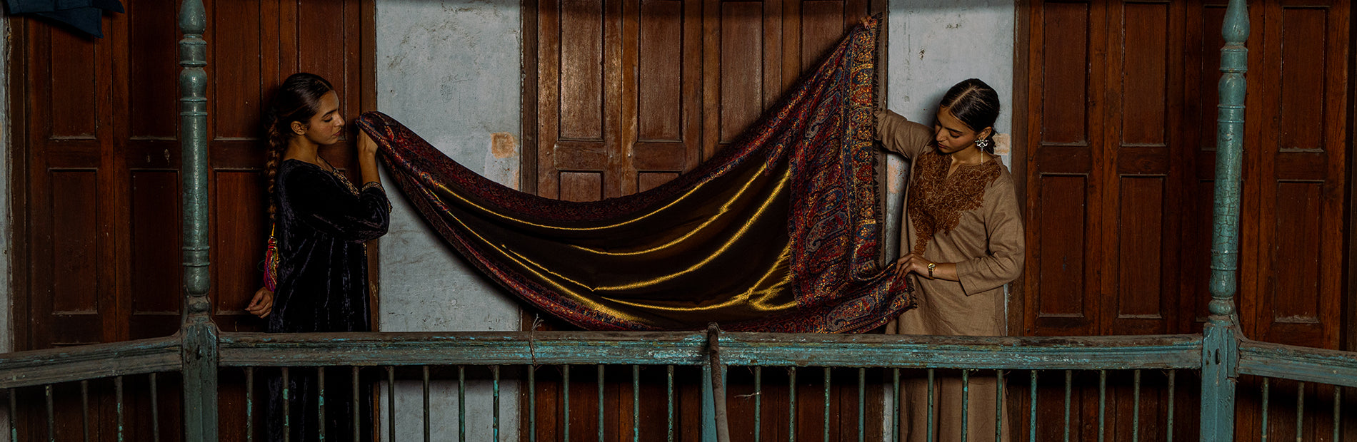 Tillaari Traditional Floral and Paisley Striped Shawl