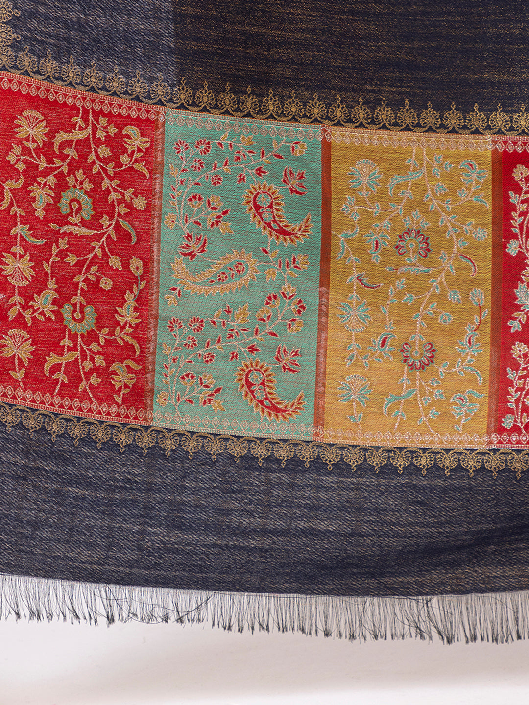 Tillari Night Blooming Navy Stole with Ethnic Border